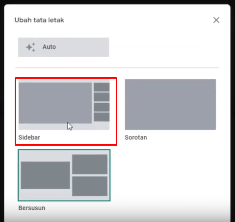 Saya akan coba membaginya lagi menjadi 2 cara yaitu dengan menggunakan layout di google meetnya sendiri, dan yang kedua adalah dengan menggunakan ekstension.